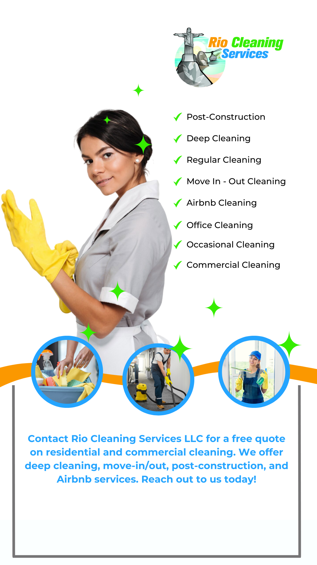 Regular Cleaning, Deep Clean, Move In - Out Cleaning, Post-Construction, Airbnb, Commercial Cleaning, Office Cleaning
